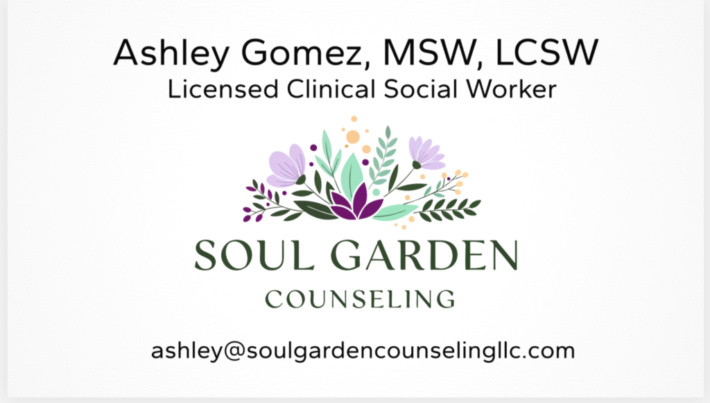 Your mental health is like a garden. You need different things on different days. You might need a little sun today, a little less water tomorrow, some fertilizer every now and then. You will have fallow and fruitful seasons. What does your garden need today? Hi there! My name is Ashley and I am a Licensed Clinical Social Worker in the state of Florida. I received licensure in 2025 and started my private practice Soul Garden Counseling in 2026. Let’s talk today about how I can help tend your soul garden.