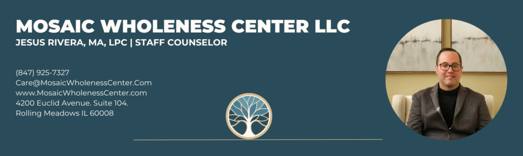 Jesus Rivera is a compassionate therapist at Mosaic Wholeness Center who provides culturally grounded, faith-sensitive counseling for individuals navigating anxiety, stress, addiction, and life challenges. He holds a Master’s degree in Mental Health Counseling from Trinity International University and is a proud resident of Waukegan, Illinois.