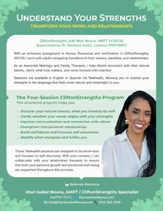 As a bilingual therapist (English and Español) with progressive values, I honor your story, your culture, and your unique identity. I utilize evidence-based, values-centered approaches, such as Cognitive Behavioral Therapy (CBT), strengths-based psychology, and solution-focused therapy, among others, to support your journey toward self-acceptance, resilience, and connection.